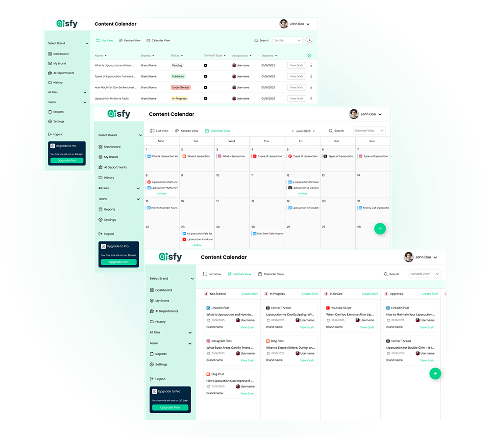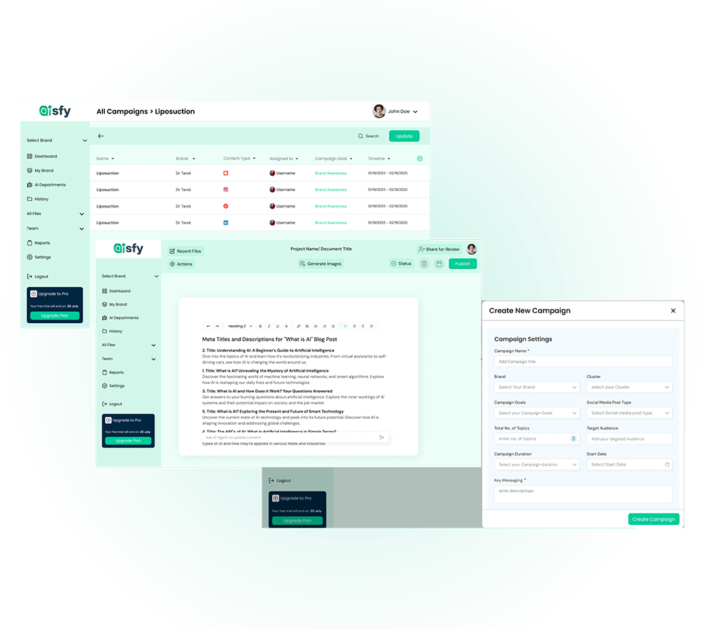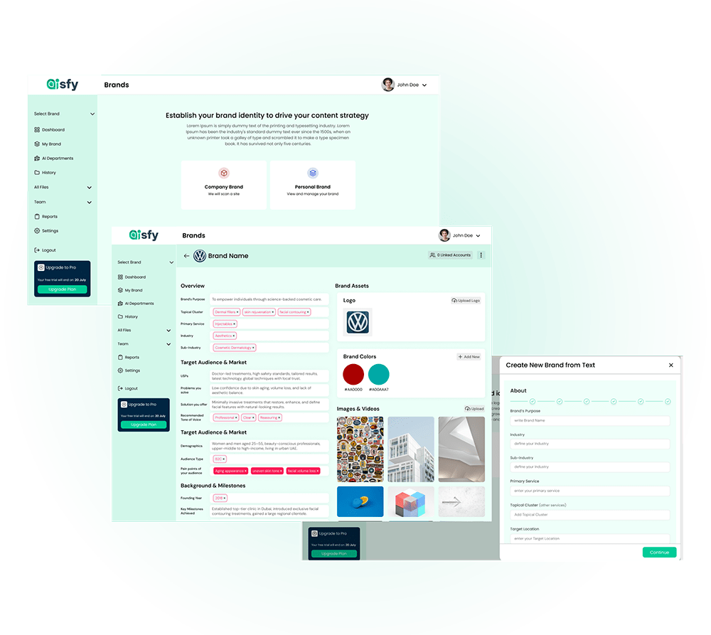 Define and deploy your brand voice, tone, positioning, for both personal and business brands, tied to your mission. Aisfy ensures every asset reflects who you are and what you stand for.